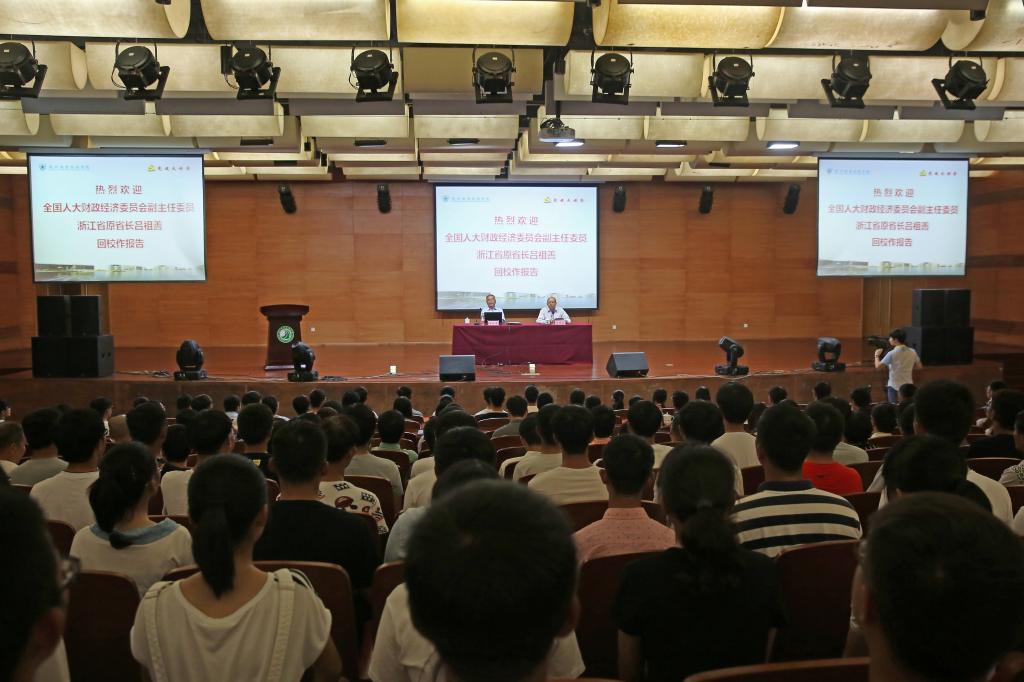 9月21日下午,全国人大财经委副主任委员、浙江省原省长吕祖善来到我校,做题为“越地长歌——璀璨的浙江历史文化”的专题讲座。我校全体党政领导班子成员,全体中层干部、支部书记、组织员、后备干部、人文社科部教师、辅导员以及700余名大一新生参加。讲座由我校党委书记安蓉泉主持。