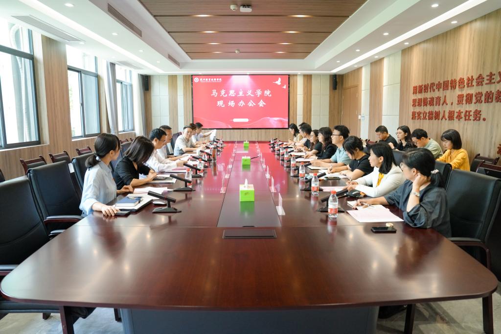 现场办公会上,办公室、质评处、人事处、教务处负责人分别围绕课程建设、人才引培、校际合作等方面作了交流发言,马克思主义学院领导班子、教研室主任和教师代表参加会议。