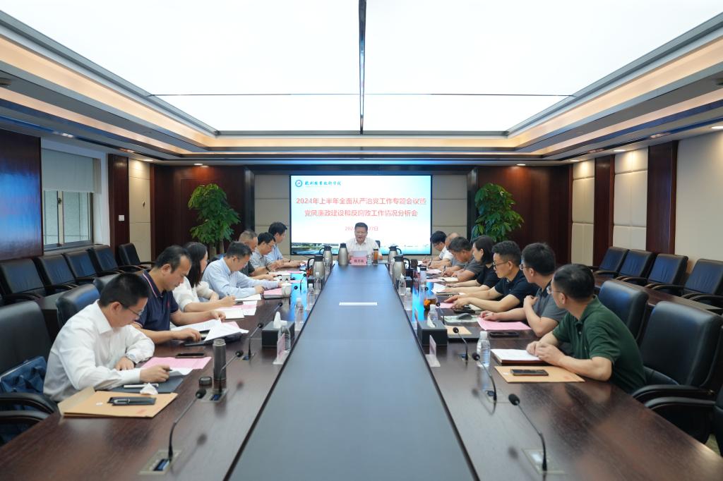 会议听取了纪委书记高云飞就2024年上半年学校全面从严治党工作、党风廉政建设和反腐败工作开展情况所作的汇报。校领导班子成员结合分管工作谈了履行“一岗双责”的情况,对职责范围内党风廉政建设存在的问题进行深入的分析并提出整改措施。有关职能部门和分院负责人围绕进一步加强科研课题经费管理作了专题发言。