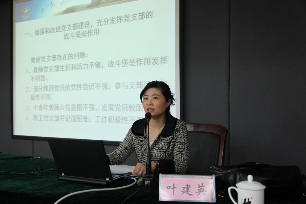 当天上午培训安排浙江大学党委组织部组织办公室叶建英主任授课。她作了题为《以钉钉子精神抓好高校党建工作——浙江大学党建工作介绍》的专题讲座,从支部建设、发展党员建设、院级分党委建设三个角度介绍了浙江大学近年来的党建工作思路和主要举措。她与大家分享了开展“五好党支部”建设(领导班子好、党员队伍好、工作机制好、工作业绩好、群众反映好),推行支部“五个必访”(党员生病住院时、工作学习有困难时、党组织变动时、有负面情绪或思想时、无故不参加活动时)等特色工作经验,令听课学员深受启发。
