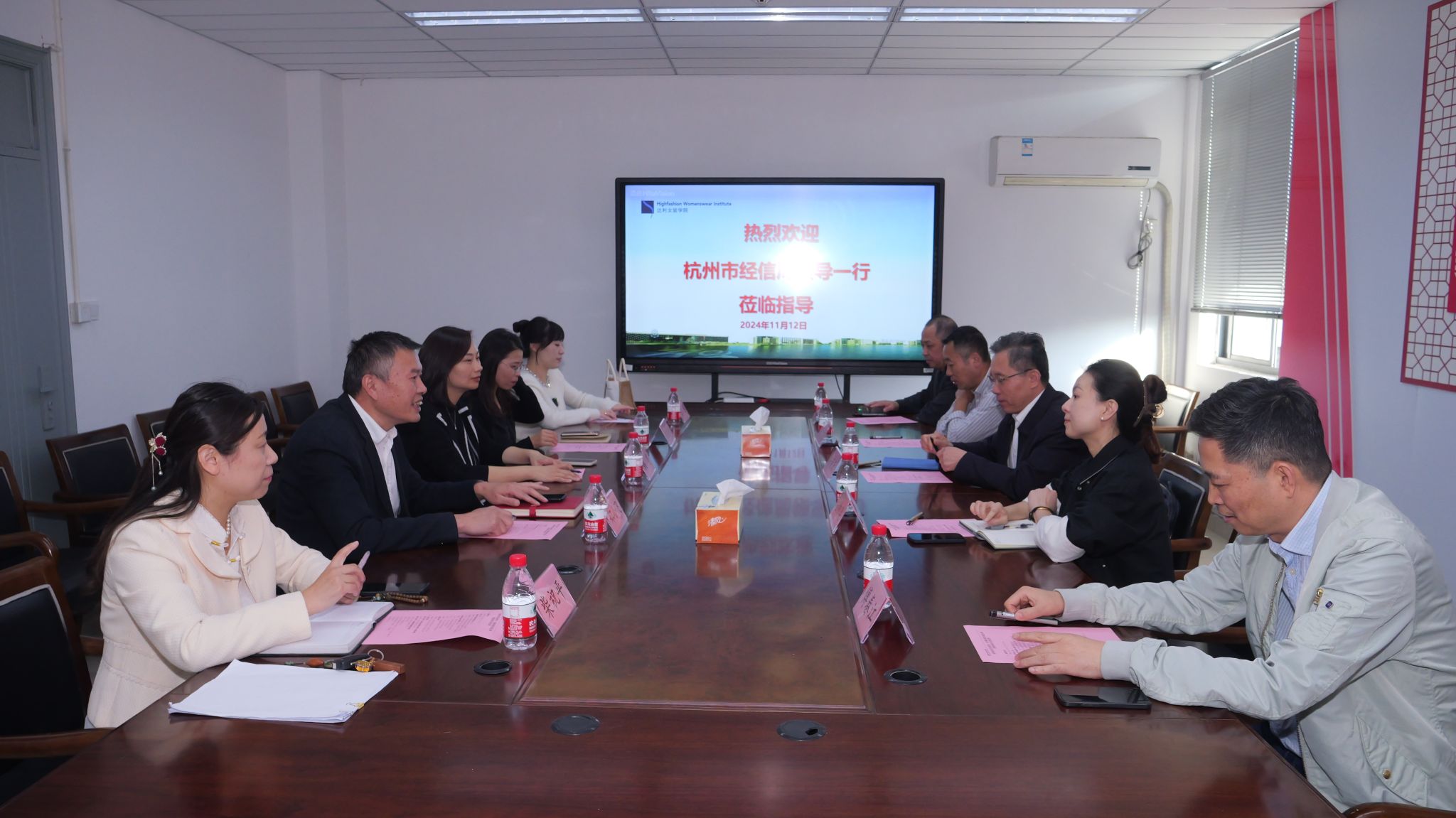 11月12日下午,杭州市经信局二级巡视员杨荣欣、消费品产业处处长程柳梁、副处长刘文吉一行莅临我校,对非遗大师进校园项目进行专题调研。学校党委委员、组织(统战)部部长韩亮,达利女装学院党总支书记王天红、院长郑小飞,大师进校园项目负责教师王慧、柴祝平一同参加。