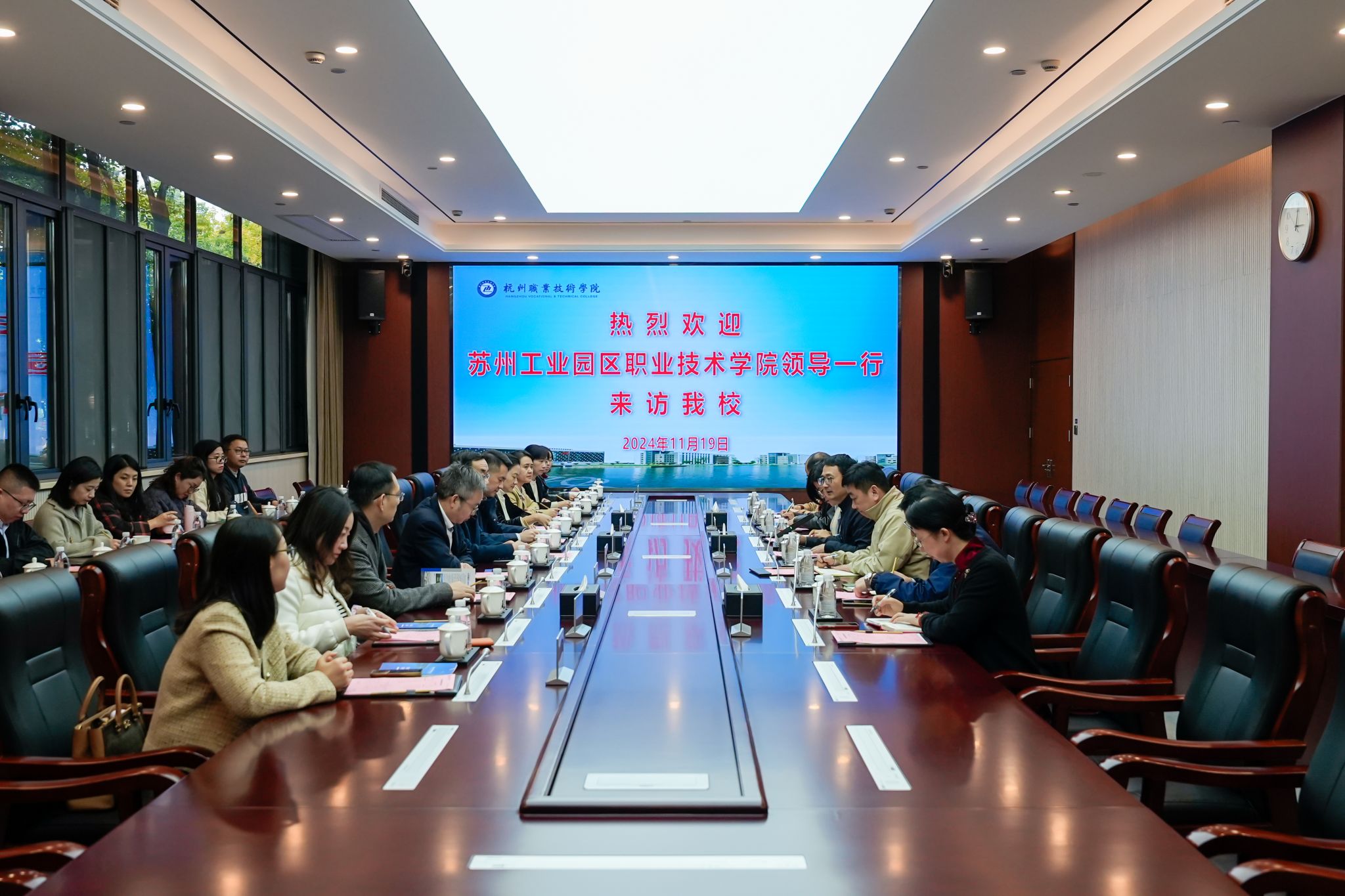 11月19日下午,苏州工业园区职业技术学院副校长王寿斌一行来访我校,副校长楼晓春,人事处、教务处、双高办、友嘉智能制造学院、商贸旅游学院、杭州动漫游戏学院相关负责人参与接待,双方在行政楼528会议室举行了座谈会。