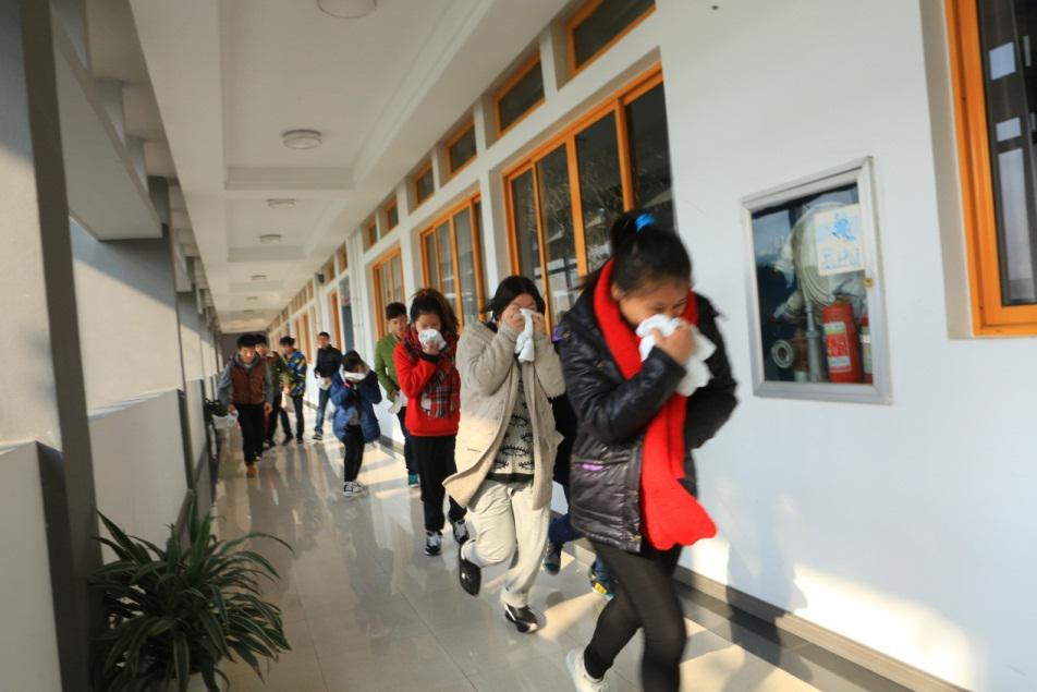 早上9点30分,随着总指挥一声令下,各职能小组迅速按计划要求进入职能区域,首先由义务消防队赶赴火灾现场,随后疏散组进入普达海学院各楼层,学院老师积极配合,按照事先准备的预案在指定区域进行引导疏散,并在重要位置及时提醒疏散人员排队有序下楼,按照预定逃生路线进行撤离,疏散至教学楼外安全区域。在所有学生安全撤离火灾现场的同时,义务消防队员迅速进行灭火,相关人员快速彻底地检查确认有无未撤离危险区的人员,并迅速携同离开火灾现场。