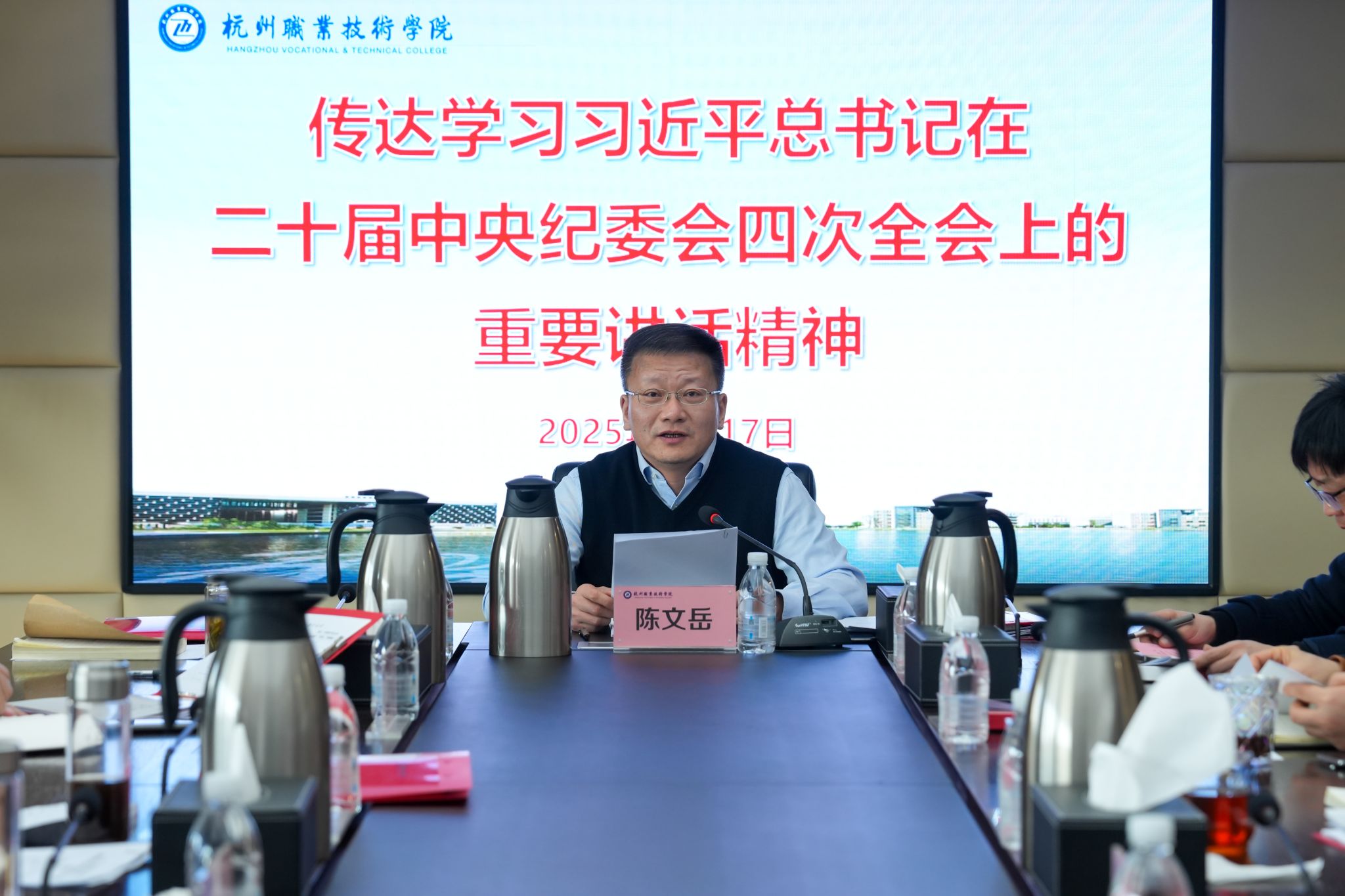1月17日上午,学校党委会“第一议题”专题传达学习贯彻习近平总书记在二十届中央纪委四次全会上发表的重要讲话精神、对审计工作作出的重要指示以及在《求是》杂志上发表的重要文章《以中国式现代化全面推进强国建设、民族复兴伟业》。全体校领导班子成员参会,校党委书记陈文岳主持会议并讲话。