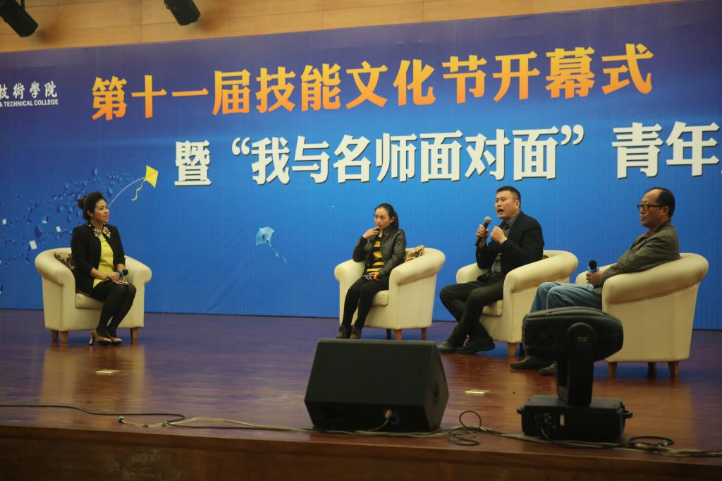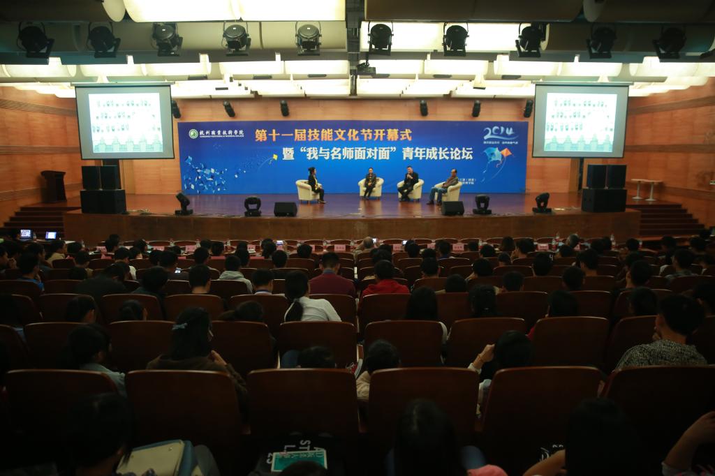 10月29日下午,我校第十一届技能文化节开幕式暨“我与名师面对面”青年成长论坛活动在图书馆一楼报告厅隆重举行。校党委书记安蓉泉、副校长张洪宪、副校长许淑燕、党委委员金徐伟、党委委员孙爱国以及第十一届技能文化节组委会成员、办公室成员以及学生近千人到场参加了活动。