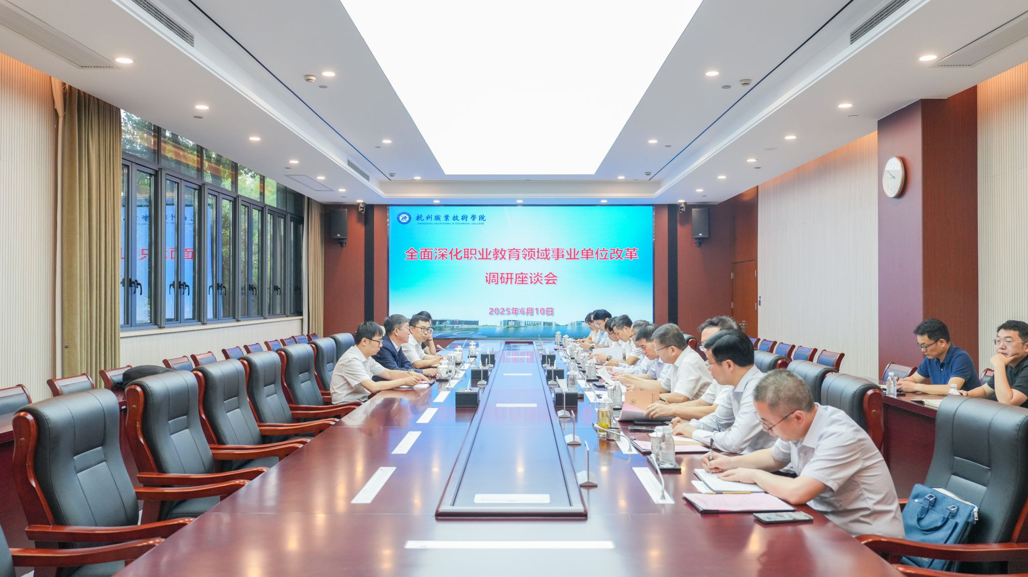 座谈会上,许翰信分享了浙江省在职业教育领域事业单位改革的实践经验与改革设想;陈文岳、徐时清系统汇报了杭职院的办学成效、改革探索及相关建议;与会其他人员围绕调研主题进行了深入研讨交流。