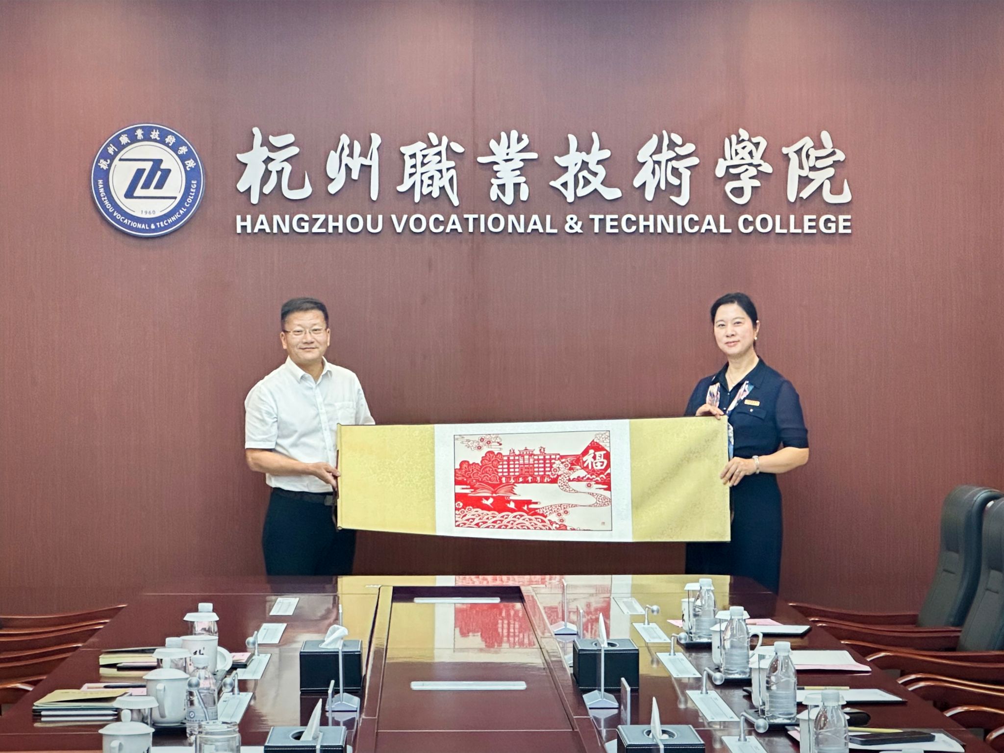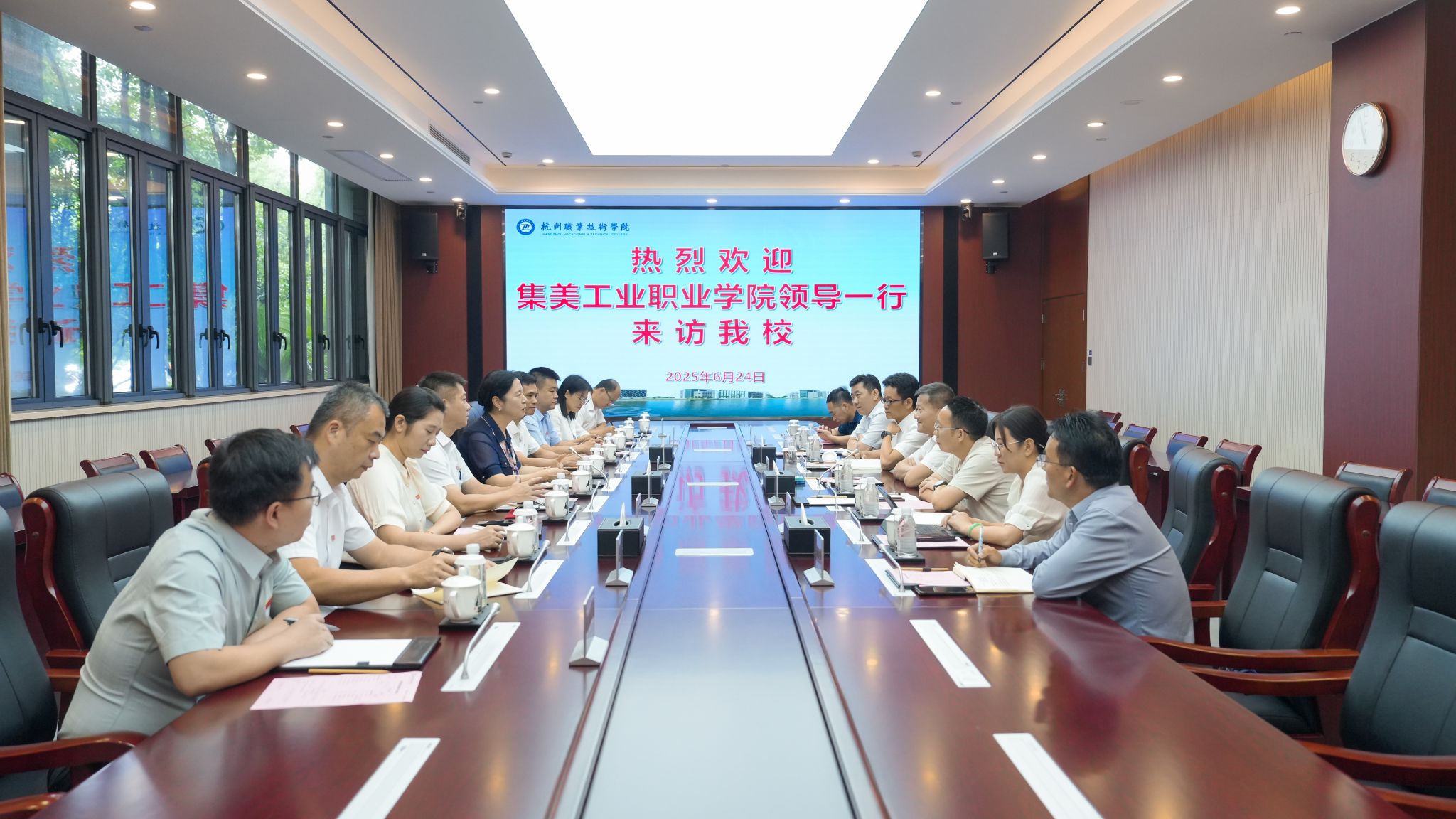 6月24日,集美工业职业学院党委书记赵丽萍一行来访我校。校党委书记陈文岳,校党委委员、宣传部长张杰,办公室、人事处、教务处等相关部门负责人参与接待。