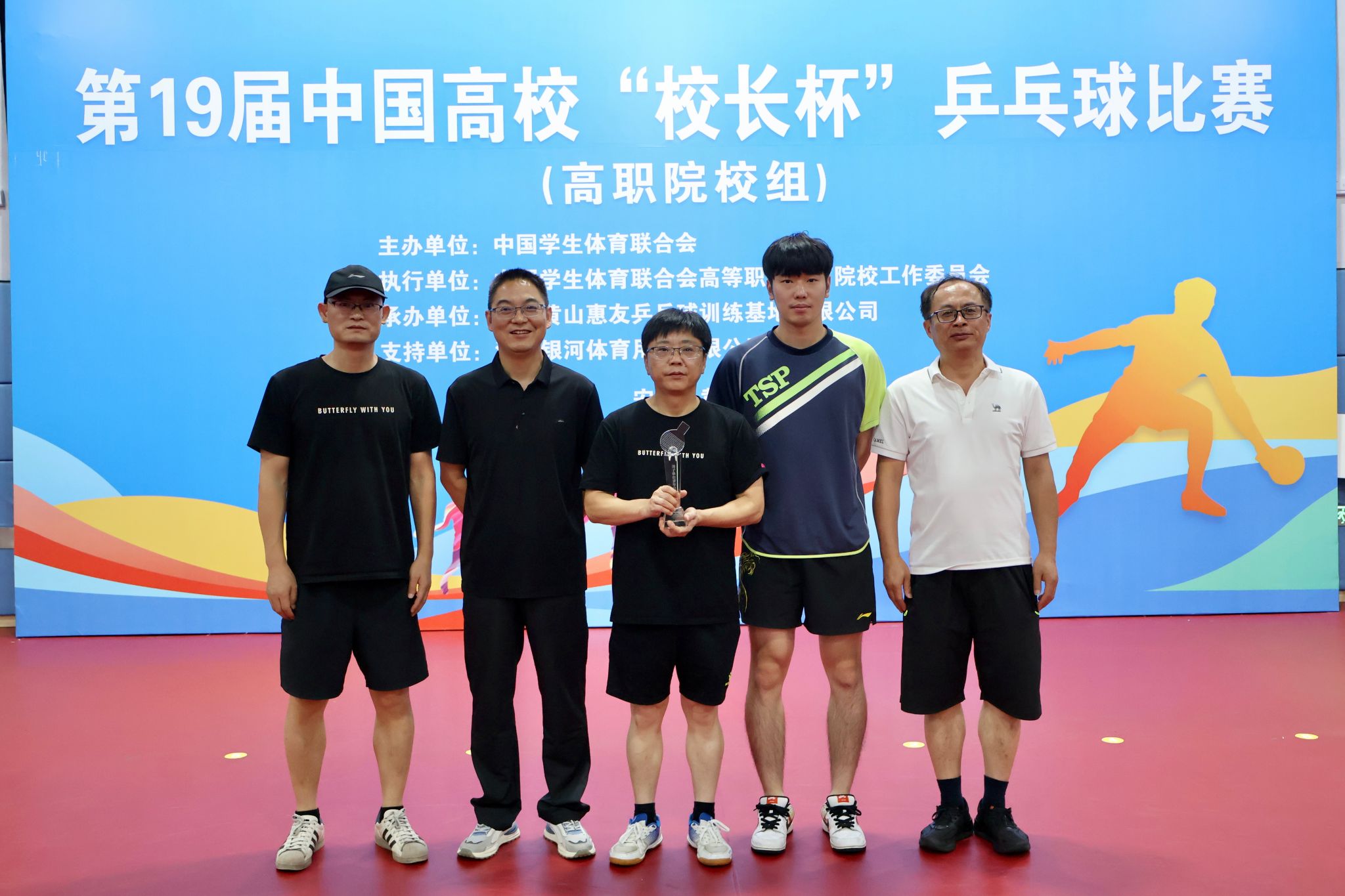 8月6日至8日,第19届中国高校“校长杯”乒乓球比赛(高职院校组)在黄山惠友乒乓球训练基地举行。中华人民共和国前驻德国大使、中德友好协会会长史明德,教育部学生体育协会联合秘书处党支部书记兼秘书长刘立新,黄山市黄山区区委书记张旭等有关领导出席开幕式。我校校长徐时清带队代表学校参加比赛,获得“校长杯”男子青年组单打亚军。