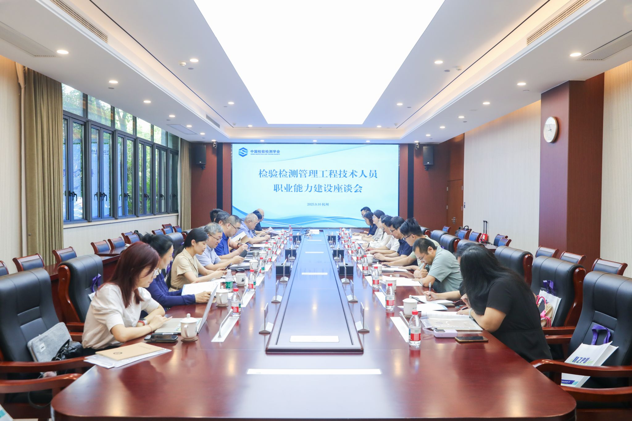 9月10日上午,由全国市场监管行指委检验检测专委会和中国检验检测学会主办的检验检测管理工程技术人员职业能力建设座谈会在我校顺利召开。会议围绕《检验检测管理工程技术人员能力评价规范》的制定展开深入研讨,来自市场监管领域的相关领导、检验检测行业专家及院校代表共20余人参会。中国检验检测学会副会长兼秘书长夏扬主持会议。