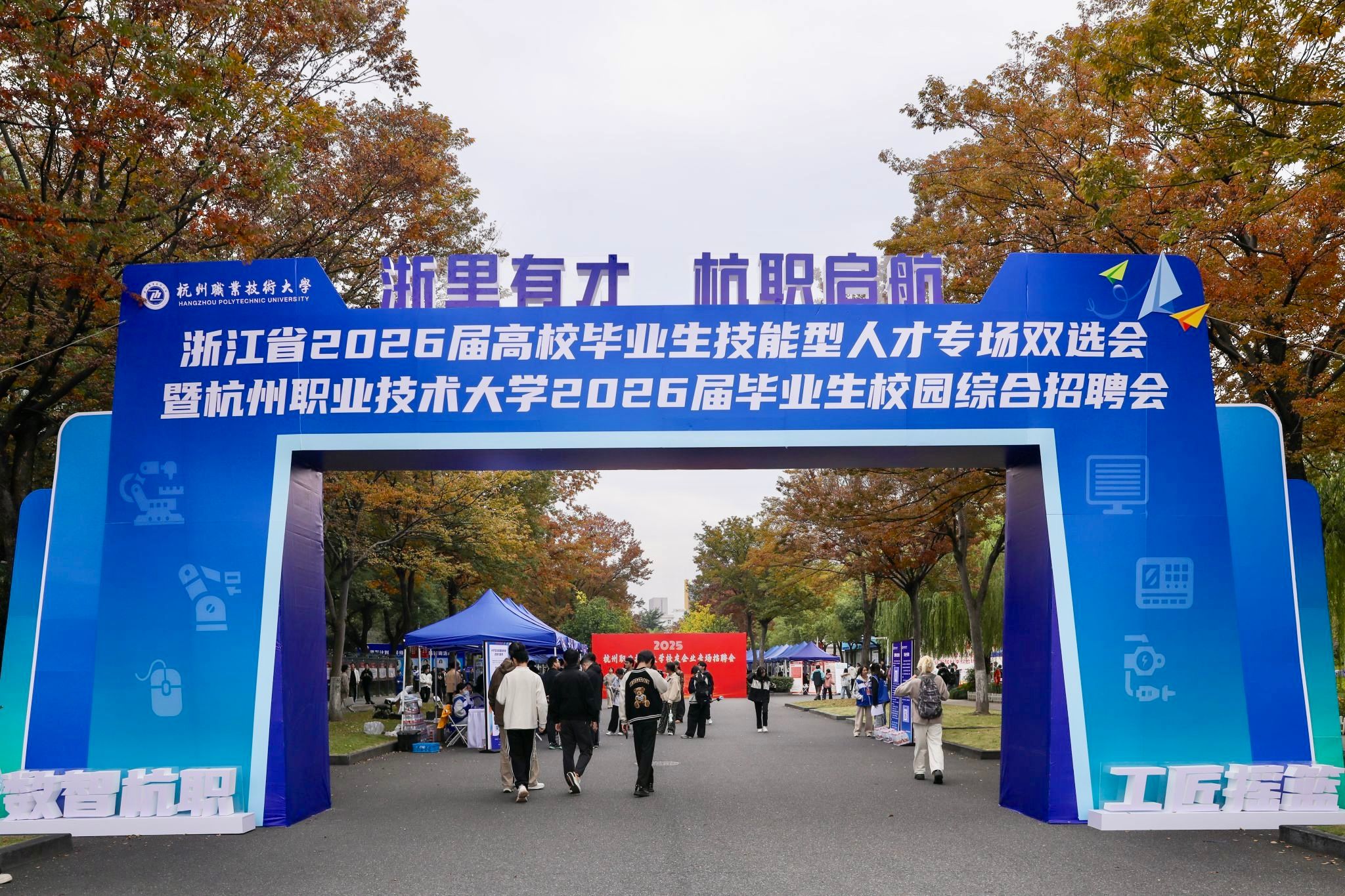 11月12日,“浙里有才 杭职启航”浙江省2026届高校毕业生技能型人才专场双选会、“就在浙”2025年浙江省技能人才岗位进校园招聘会杭州职业技术大学专场、“潮聚杭州”高校行-2025年在杭高校公益性校园招聘会杭州职业技术大学专场、2025年杭州市大学生秋冬就业见习招聘会杭州职业技术大学专场、“职”等戎归·智聘钱塘一2025年杭州市钱塘区退役军人及随军未就业家属秋季综合场招聘会暨杭州职业技术大学2026届毕业生校园综合招聘会在善湖广场隆重举行。本次招聘会吸引了568家优质企业报名,根据人才供需适配筛选,南方泵业股份有限公司等高端制造类、杭州安恒信息技术股份有限公司等高新技术类、杭州全速网络技术有限公司等数字服务类,共计451家企业参加现场招聘,为省内毕业生提供了9500余个岗位。