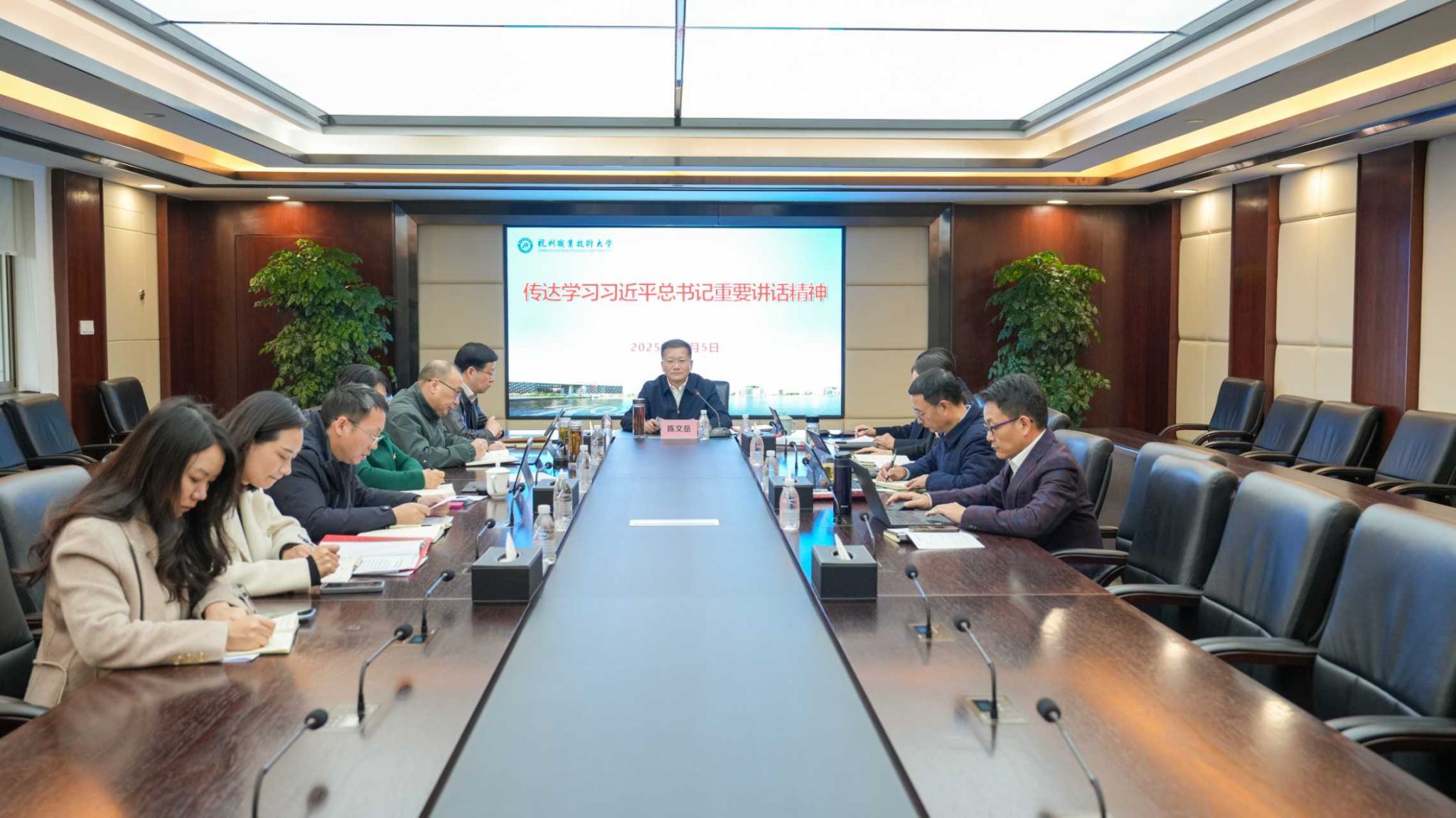 12月5日上午,杭州职业技术大学召开党委会“第一议题”学习会,深入学习贯彻习近平总书记近期重要讲话重要指示精神,研究部署我校贯彻落实意见。校党委书记陈文岳主持会议并讲话,全体校领导班子成员参加。
