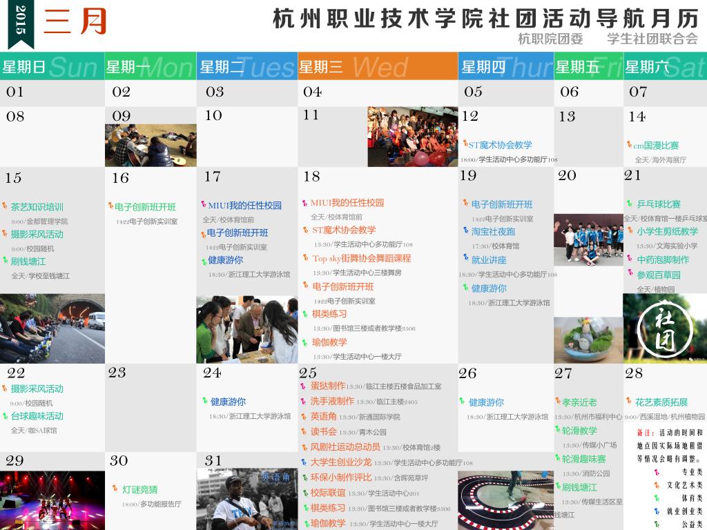 杭州职业技术学院三月社团活动导航月历