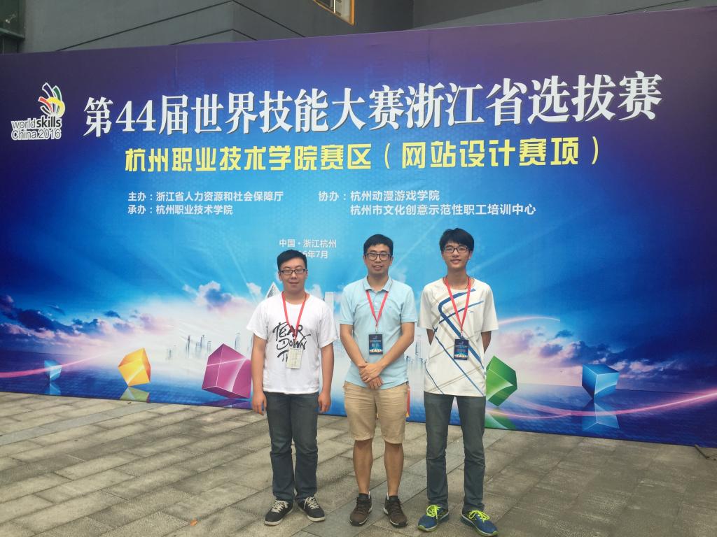 世界技能大赛浙江省选拔赛由人力资源和社会保障厅主办,网站设计赛项由我校动漫游戏学院承办。网站赛项是根据项目需求制作站点设计,实现能在各种终端上使用的页面、交互效果以及后台功能的竞赛项目,考查的技能点和素质点都相当全面,是对学习能力、应变能力和心理素质的综合考验。此赛项系我校第一次参加,选手吴耀杰和吕宽两位同学在杨森、许沪敏、朱涛、徐丽珍、王启宾等老师组成的教练团队的指导下,经过一个月的积极备战,取得了第二和第四名的好成绩。