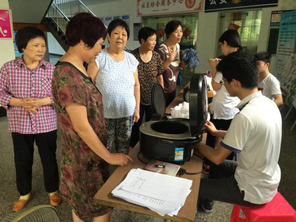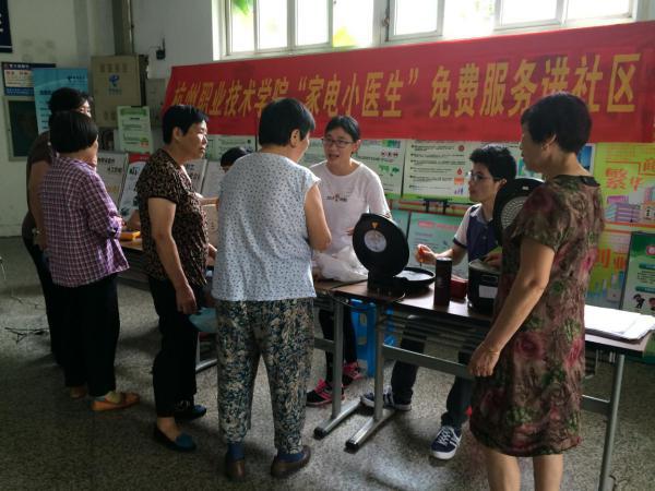 7月2日,特种设备学院机电专业学生李真真、李辉、汪胜明等同学在老师带领下,来到下沙清雅苑社区为居民们进行免费家电维修服务。这是本学期以来他们第3次进入清雅苑社区提供服务。