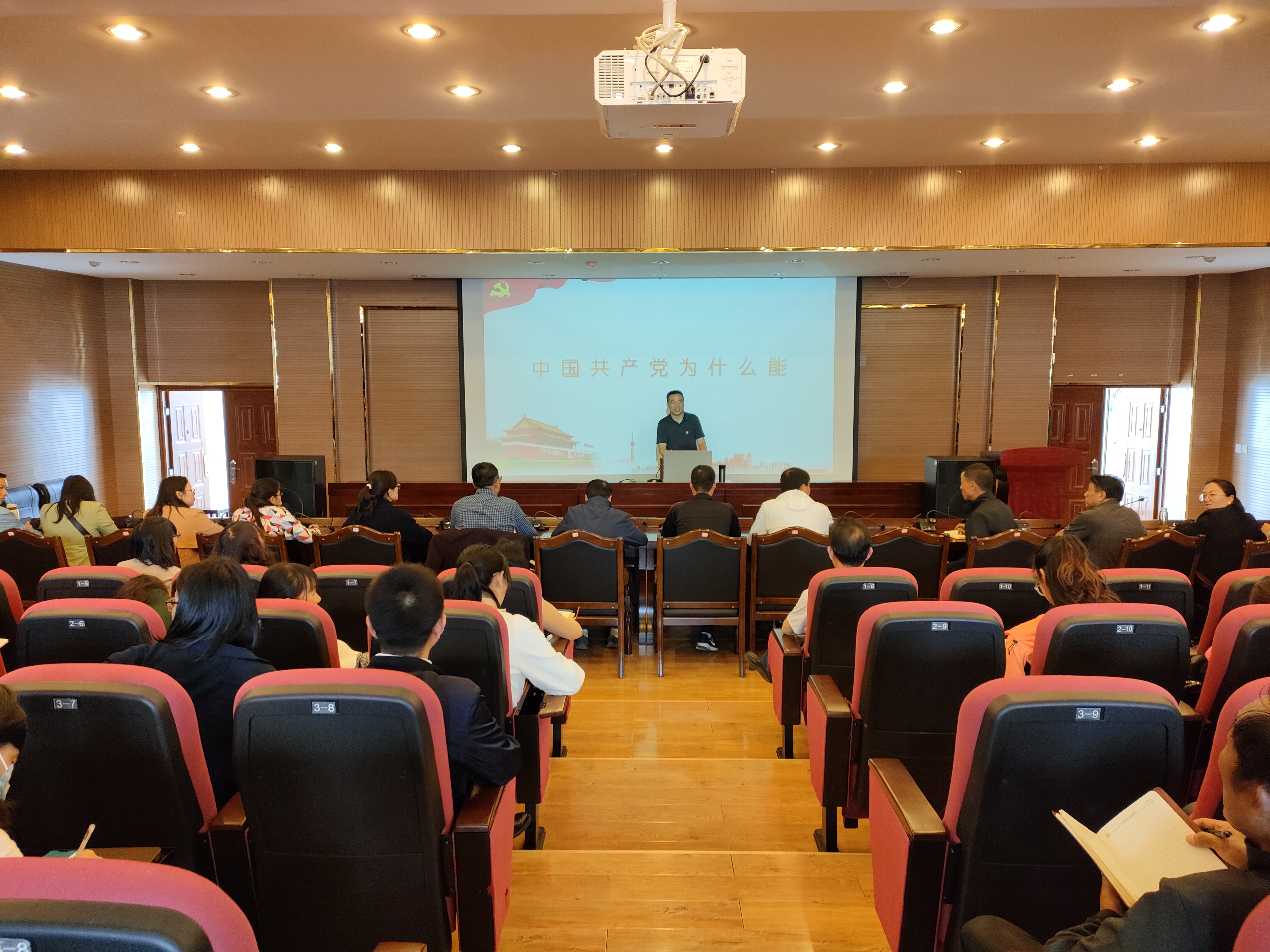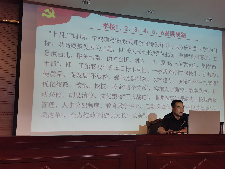 张兰胜分别从科学的理论指导,坚定地理想信念、强大的组织优势、坚实的群众基础和彻底的自我革命五个方面详细阐释了中国共产党为什么能的问题。同时,结合学校的发展思路和所联系学院的工作实际,对今后如何充分发挥二级学院活力,做好强院兴校工作、如何更好地服务师生做了翔实的讲解。