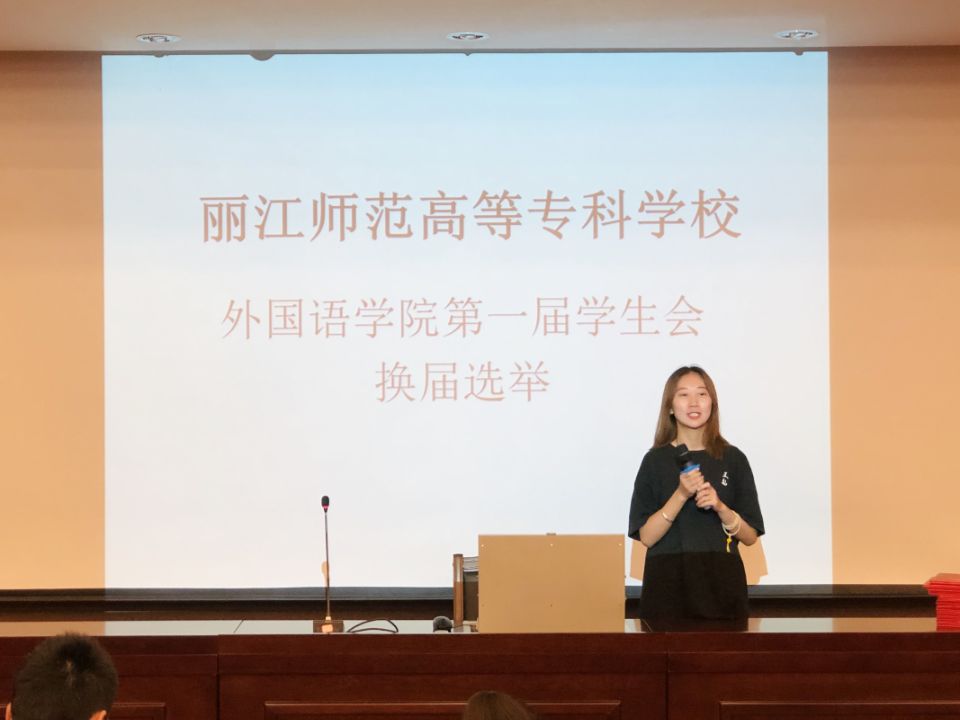 在上一届学院学生会主席余国俊宣布选举流程后,参与竞选的同学依次登台进行了竞选演讲,换届工作有序进行。参与本次换届选举的老师及上一届干部们针对不同岗位,对参选的同学进行了提问,并给予了中肯的建议。经过激烈角逐,以袁加丽同学为学生会主席的新一届外国语学院学生会干部产生。