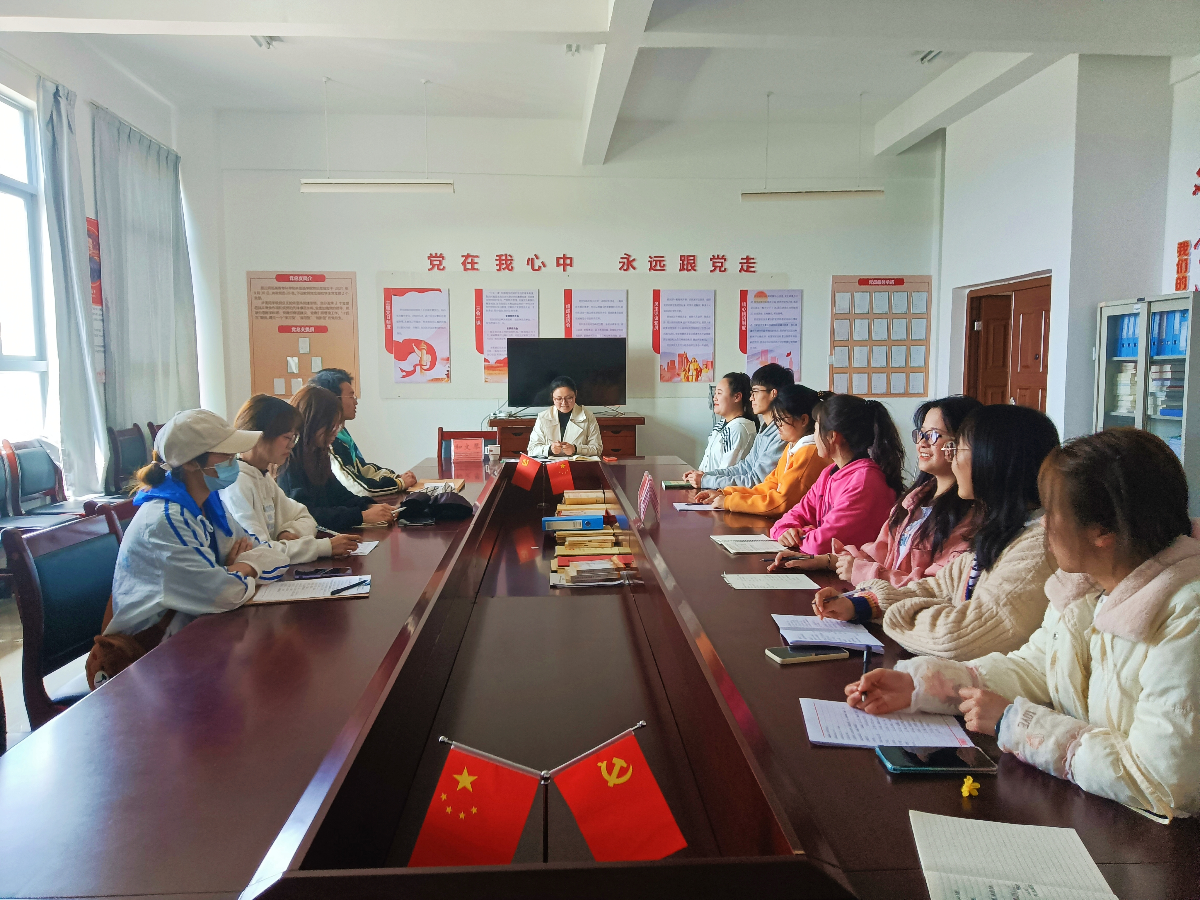 会上,和婷老师对近期开学以来的团学工作进行了梳理和总结,并对本学期即将由各团支部开展的活动进行了安排。在场的每一位团支书作了交流发言,并提出了多种多样、颇有趣味的活动计划和方案。和婷老师还在会上向参加了丽江市创文活动志愿服务的同学颁发了志愿者证书和纪念书签,感谢我院青年志愿者的辛苦付出。