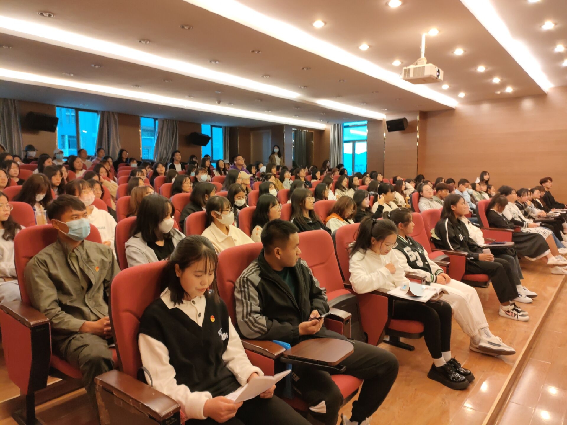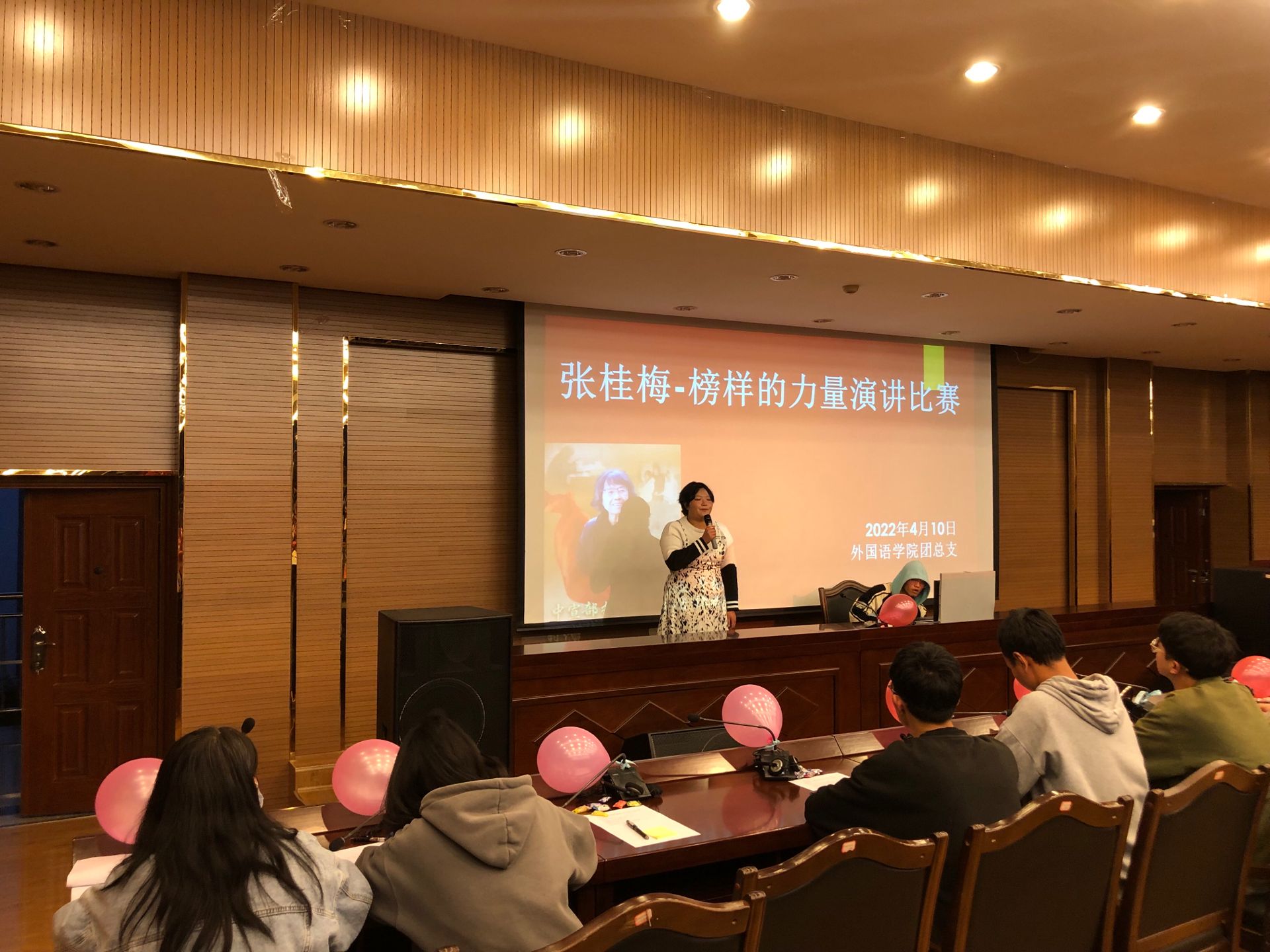 为激励同学们学习张桂梅精神,外国语学院团总支于2022年4月10日在实训楼318报告厅开展了“张桂梅--榜样的力量”主题演讲比赛活动。马克思主义学院主席团张文囡,外国语学院团副熊敬,外国语学院主席团安云东,外国语学院艺术团马茹云,外国语学院声乐部王顺龙,外国语学院声乐部范贵廷,以及学院各班团支书出席了本次活动。本次比赛共有13位参赛选手,参赛演讲内容精彩,引起深思。