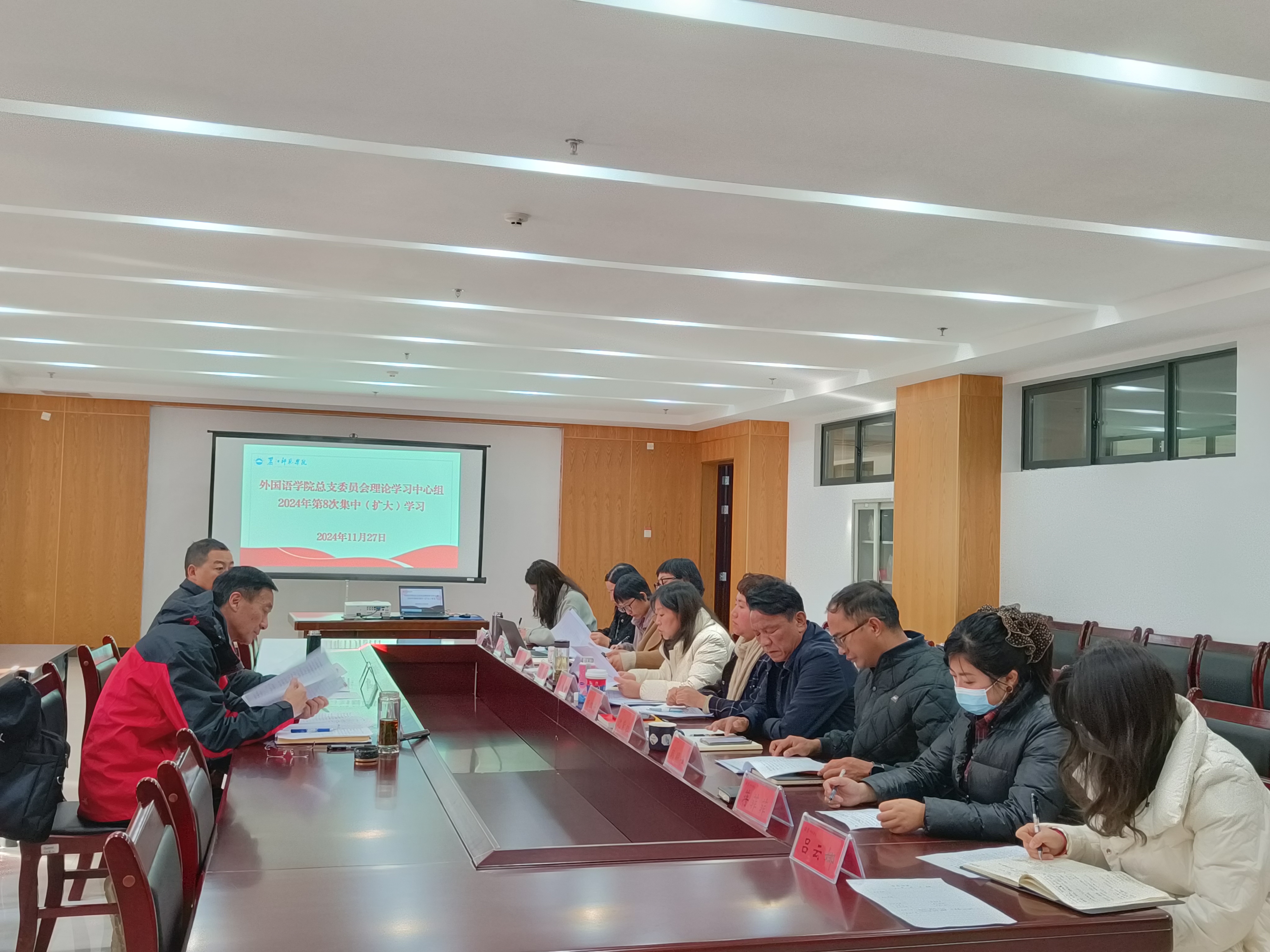 11月27日上午,外国语学院党总支理论学习中心组开展2024年第8次集中学习研讨,学院领导班子成员、总支支委、支部书记、综合办主任、教务办主任、学工办主任参加研讨。学前教育学院党总支书记吕志刚、学生处处长刘杰列席旁听。学院党总支书记李根艳主持会议。