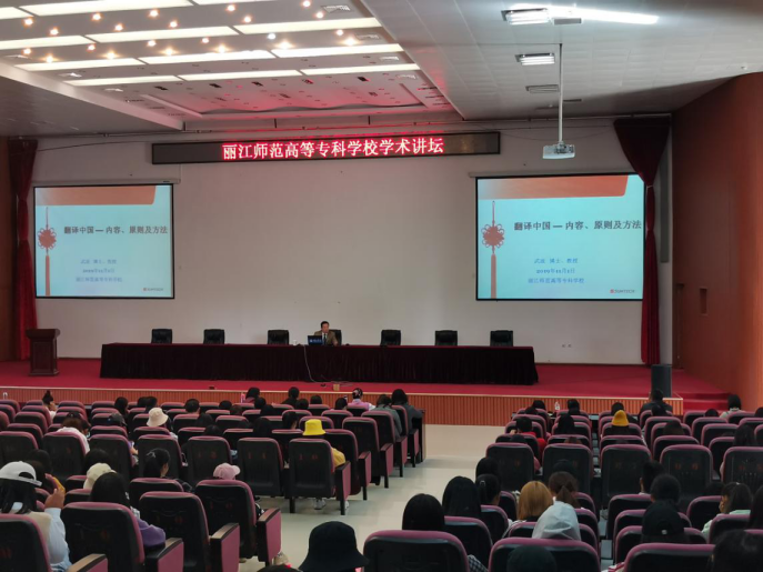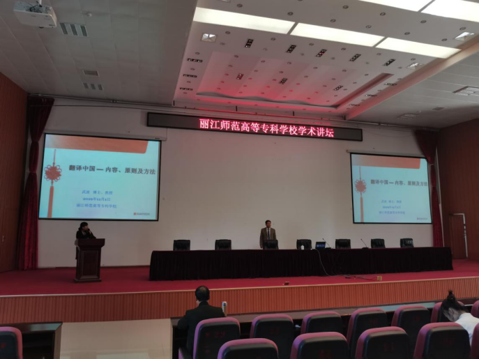 武波教授根据习近平新时代中国特色社会主义思想的指导精神,结合文化自信方面重点讲授了中国文化的精髓,同时指出作为中国人学好中国文化的重要性。武波教授还就中华文化的外译策略提出了以异化策略为主从而更好地传播中国传统文化的翻译思想。最后,武波教授对于我院的科研思路提出了意见建议:用英语做好丽江传统文化的传播及外译,并指出民族传统文化的传播研究有广阔前景,老师们可以大有作为。