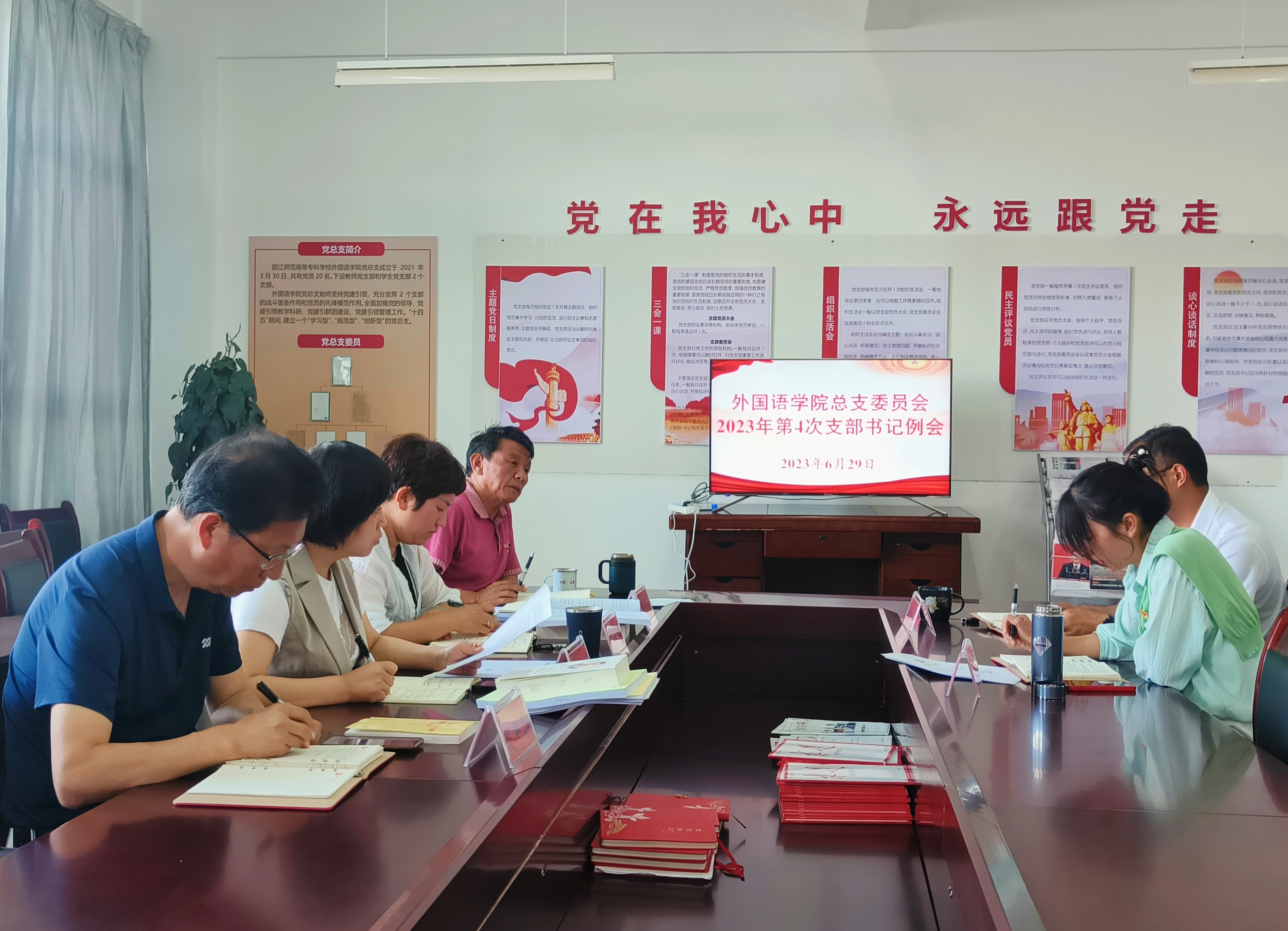 6月29日,外国语学院在求是楼323召开2023年第4次党支部书记例会。学院党总支副书记、专职组织员、教师党支部书记及学生党支部书记参加会议。会议由学院党总支书记李根艳主持。