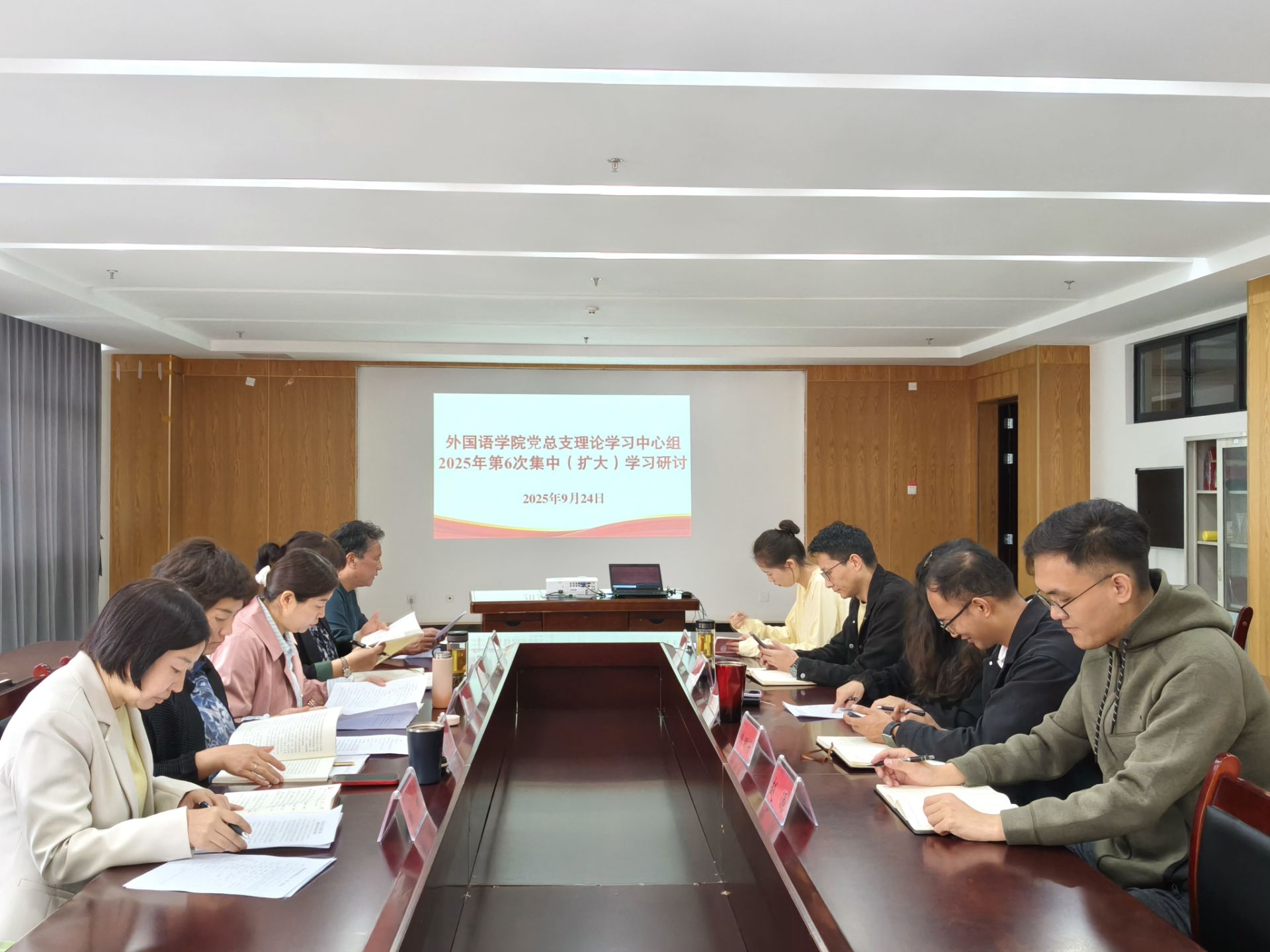 9月23日上午,外国语学院党总支理论学习中心组在励志楼401开展2025年第6次集中学习研讨。学院领导班子成员、总支支委、支部书记、综合办主任、教务办主任、学工办主任及其他参学人员参加,会议由党总支书记李根艳主持。