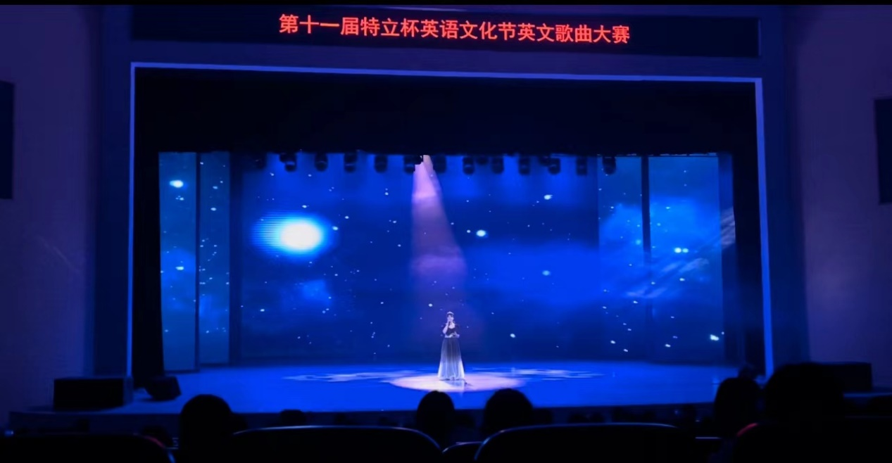 在最近一段学习时间里,我们的学习也已经步入正轨,课堂学习丰富多彩,同学们会在课上小唱一曲,展现出自己的才艺,课上也会有互动小游戏以此来活跃课堂气氛。这段时间,长师正在举办一年一度的“特立杯英语文化节”,其中,英文歌曲大赛,英语配音大赛,英语喜剧大赛,教师书写技能大赛等系列具有英语特色的比赛精彩纷呈。我们也有幸成为英文歌曲大赛的观众,一场音乐会拉开序幕,现场极其震撼。来自各个学院的选手们在台上自信动人的歌声展示出音乐家的浪漫气质,绚丽的灯光舞美动人心弦,台下的观众也毫不吝啬自己的欢呼与掌声。