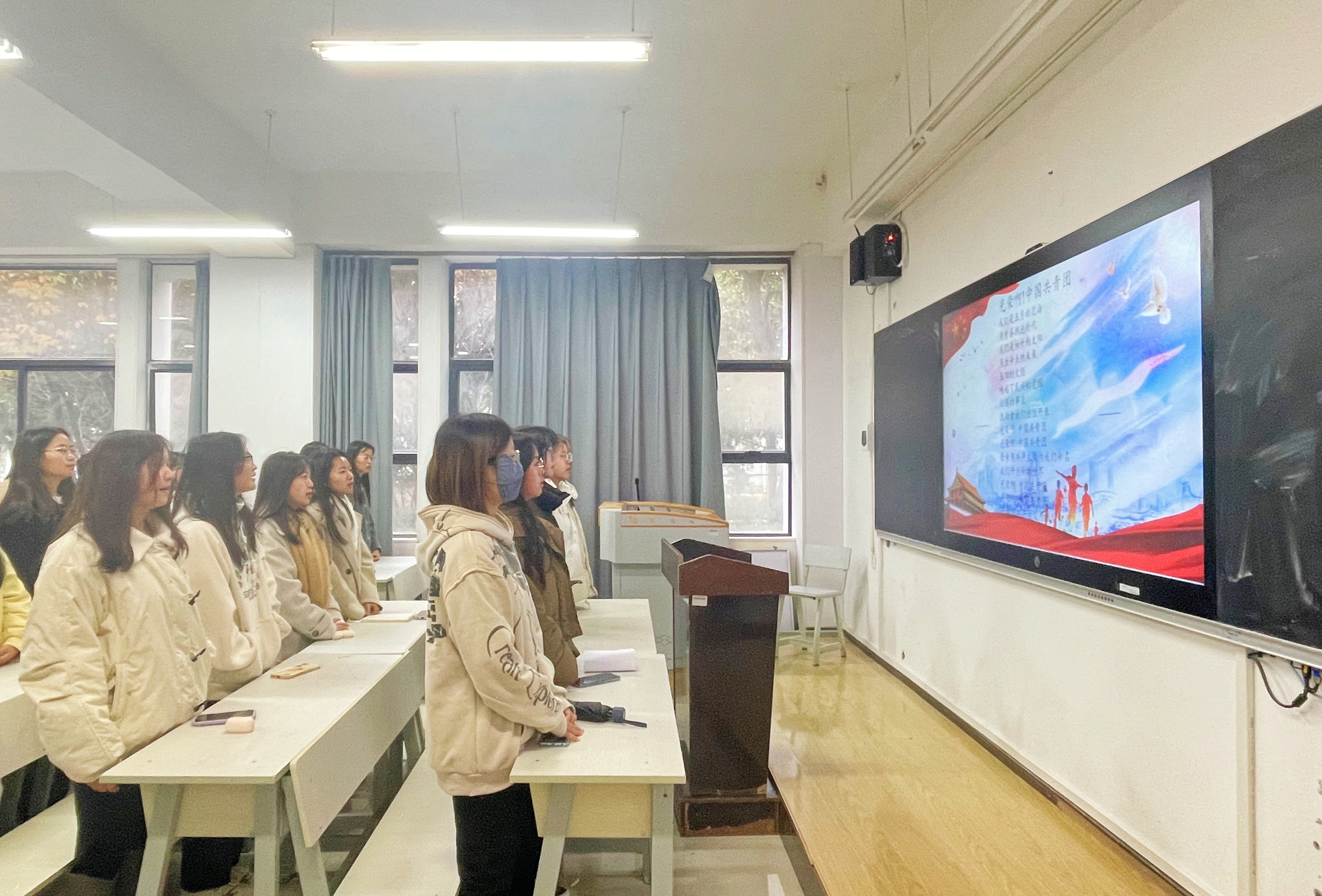 为持续学深悟透党的二十大精神和团的十九大精神,2023年11月18日,外国语学院团总支在博学楼119组织团学干部开展“学习团的第十九大会议精神,谱写新时代青春奋斗力量”主题团日活动。