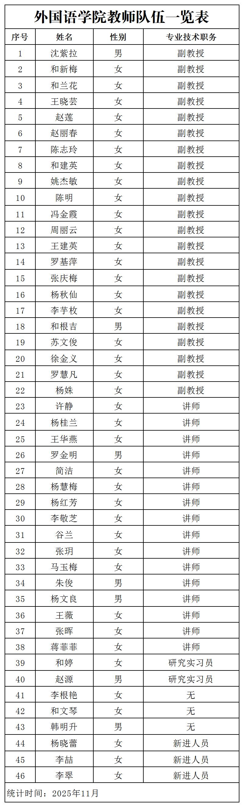外国语学院教师队伍一览表