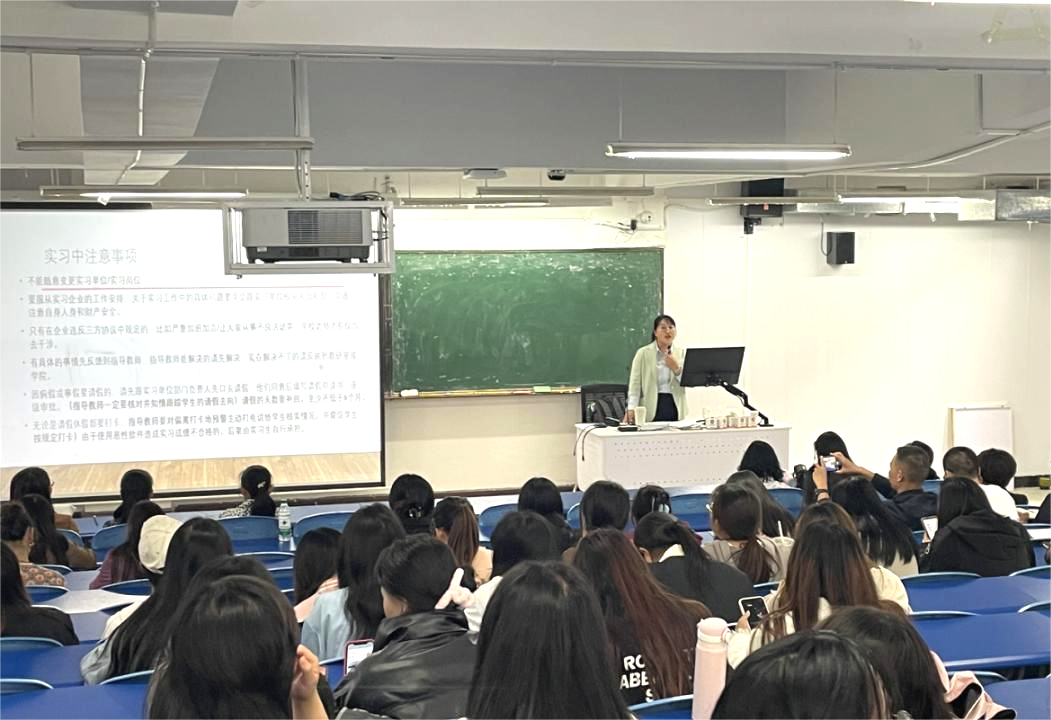 2024年6月26日,外国语学院高职英语教研室组织召开2025届应用英语专业和旅游英语专业实习生动员大会,学院分管实习工作的和兰花副院长、分管学生工作的杨红芳副书记和18名实习指导教师及181名2025届应用英语专业和旅游英语专业实习生参加了会议。