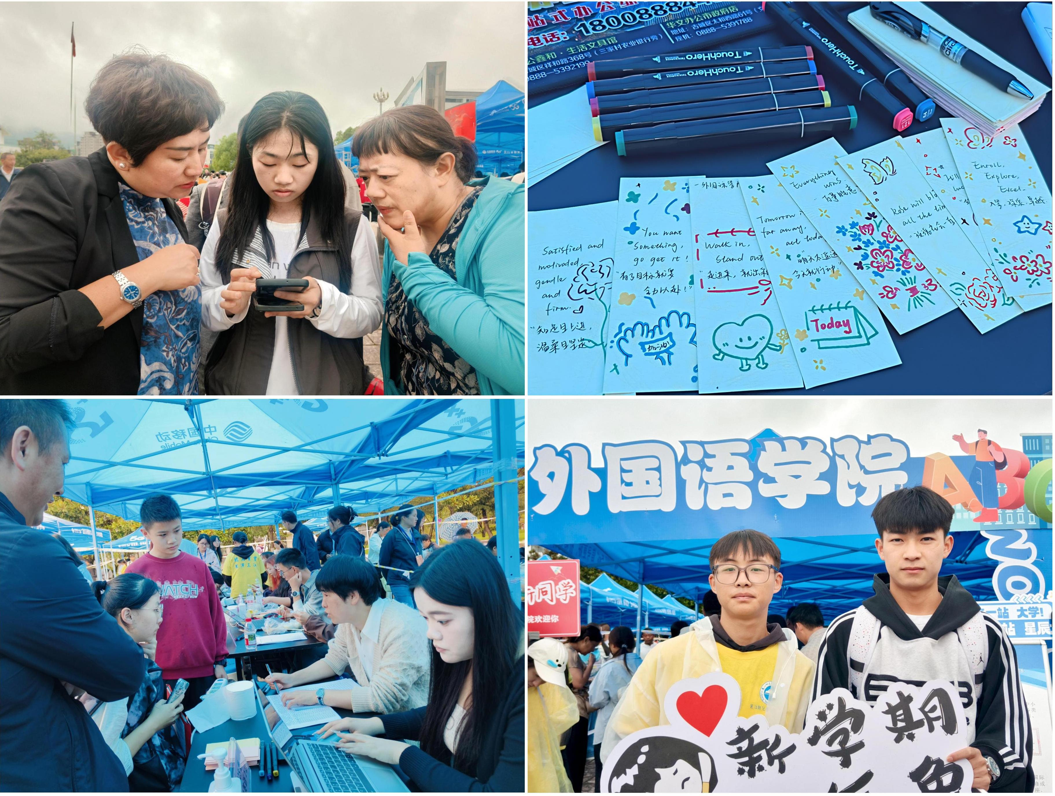学院党政领导班子成员、辅导员和2025级新生班主任一早便来到迎新现场,协调指导各项接待工作,与新生及家长亲切交流,耐心解答疑问,并为每一位新生送上了学院精心准备的书签,传递外国语学院大家庭的温暖与关怀。
