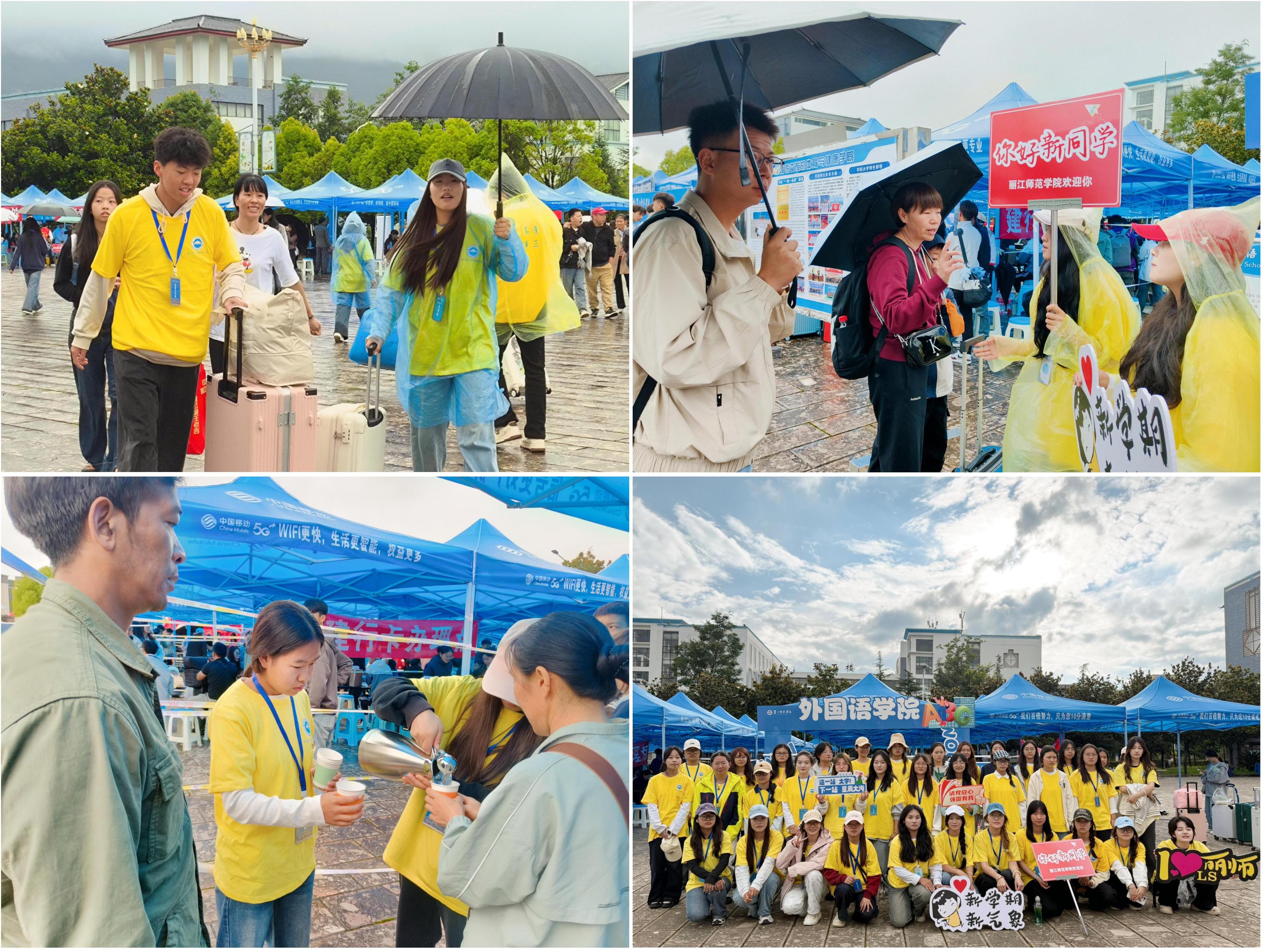 8月30日7时,外国语学院迎新工作正式启动。学院选派160余名学生助理、学生干部及志愿者组成迎新志愿服务队,分别在校门口、报到点、宿舍区等关键位置提供全流程志愿服务,协助新生完成信息登记、物资领取、行李搬运等事宜,并主动引导新生熟悉校园环境。志愿者们以热情周到、细致体贴的服务,充分展现了丽师学子良好的精神风貌与奉献意识。