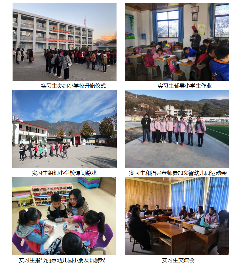 2019年12月16日-27日,2015级五年制英语教育班、2017级英语教育1班和2班共95名同学,分组到金山中心完小、十杰小学、新团完小、新文完小、丽惠幼儿园、文智幼儿园进行了两个周的集中教育实习。实习期间,同学们积极主动、阳光活跃、认真努力,参加小学校和幼儿园的课堂教学、课间健身和娱乐活动以及幼儿保育工作。指导教师认真负责,轮班到实习点看望和指导学生,加强与实践教学基地学校师生的沟通交流,了解我校学生的实习情况和小学校教育教学现状。