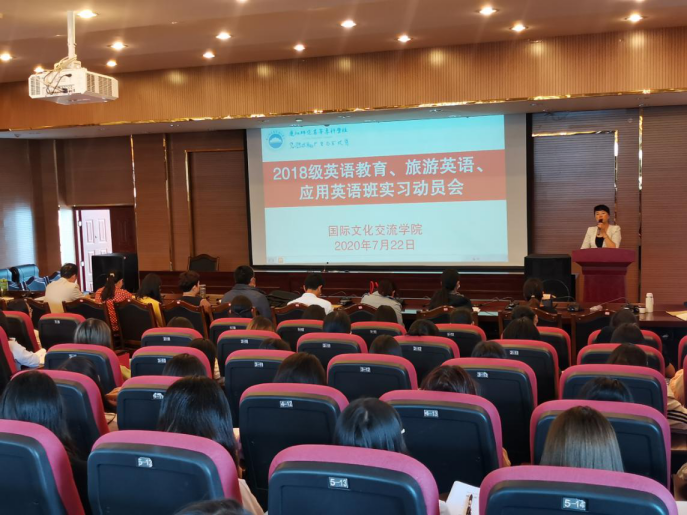 2020年7月21日和7月22日,国际文化交流学院在实训楼318召开2018级毕业班实习动员会及实习宣讲会。杨丽萍院长、厦国银副书记、和兰花副院长、教学科科长苏文俊和实习指导教师出席了此次实习动员会。