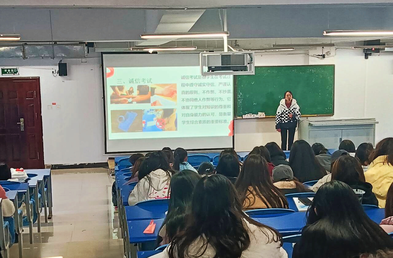 2022级辅导员陈艳丽立足于2022级实际,从人身安全、交通安全、预防网络诈骗、诚信考试等方面进行教育引导,帮助即将走向实习岗位的同学们树立正确的就业观念,提前做好假期规划,积极投身社会实践,为实习、就业做准备鼓励同学们努力提升自己的综合素质和竞争力同学们踔厉奋发笃行不怠,赓续前行奋楫争先。