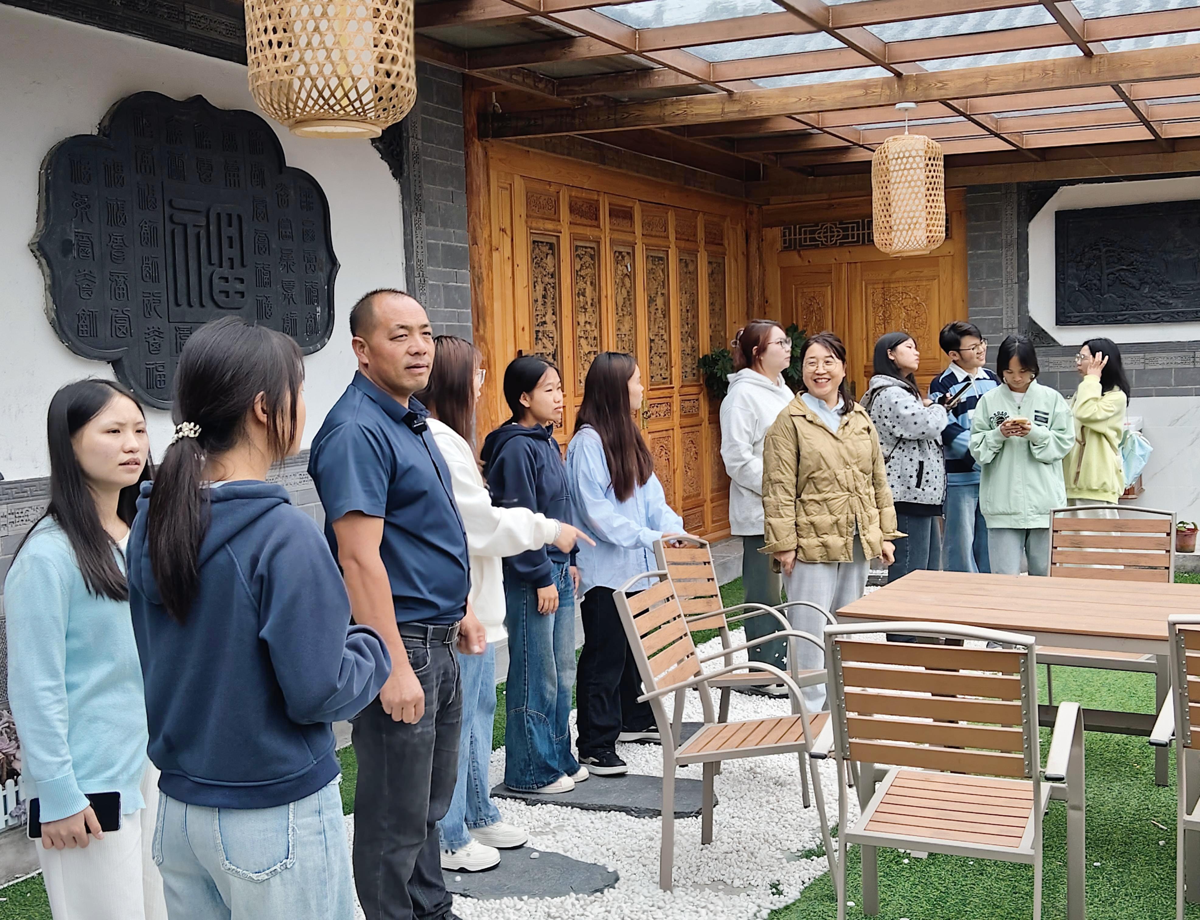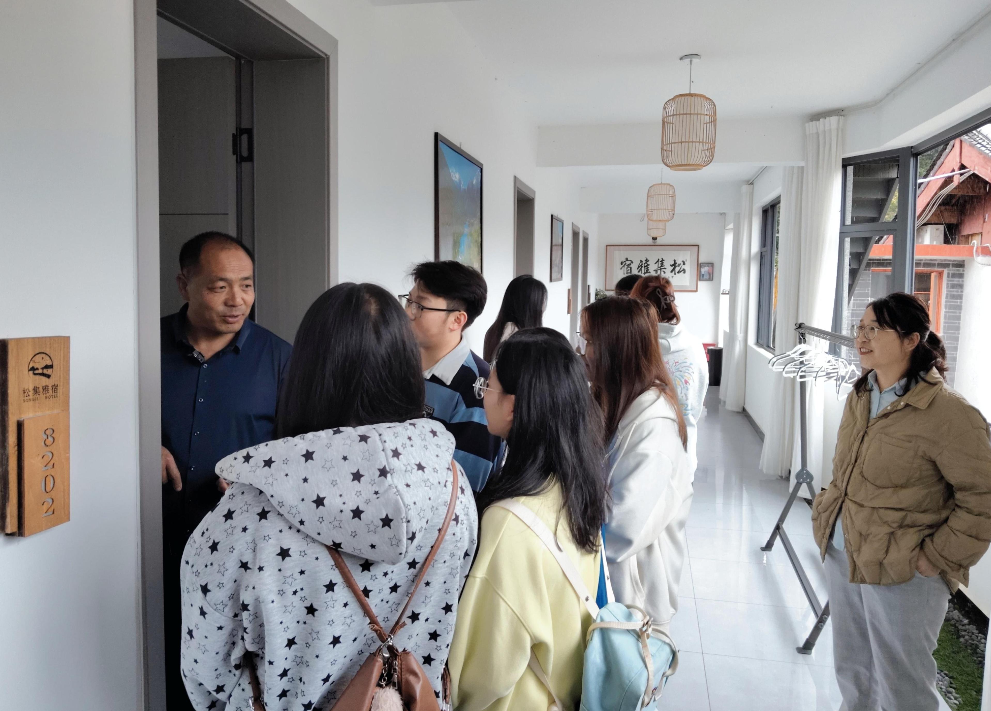2025年8月29日,外国语学院乡村振兴促进团师生赴古城区开南街道启良二组,开展暑期“三下乡”社会实践活动,重点考察当地乡村旅居产业发展情况。团队走访了位于该村的松集雅宿,并与民宿创始人王志松先生进行了深入座谈,聆听并学习了他在乡村振兴背景下的创业历程与宝贵经验。