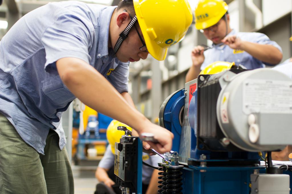 电梯专业学生在真实工作场景内开展学习