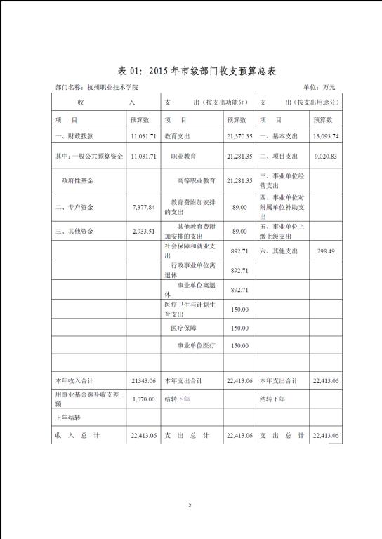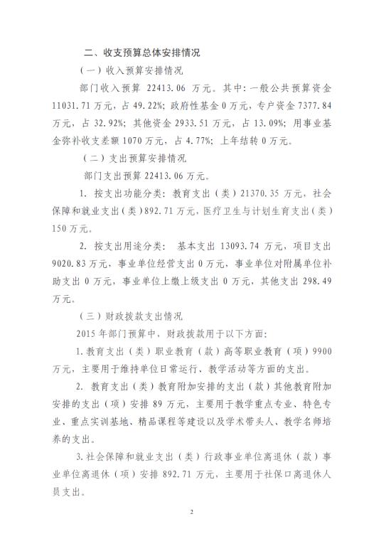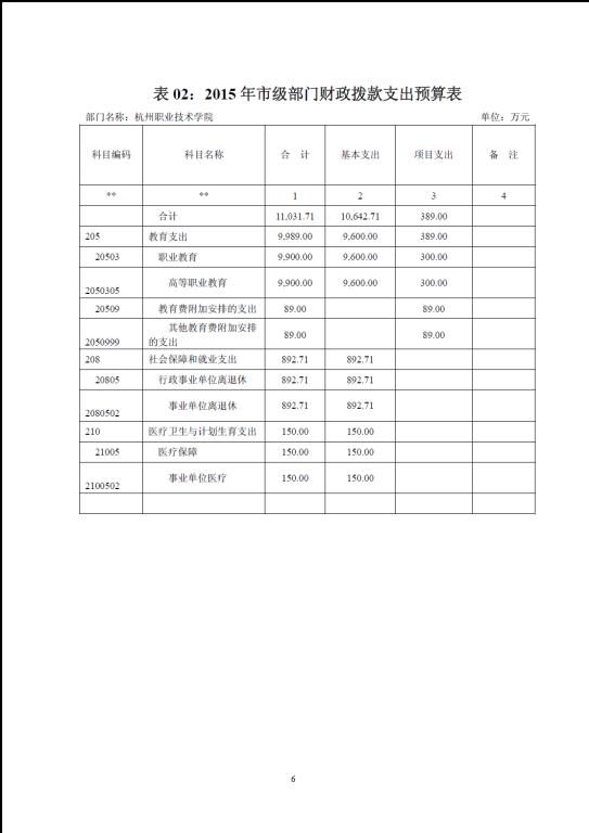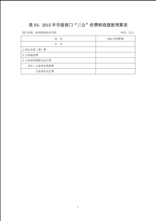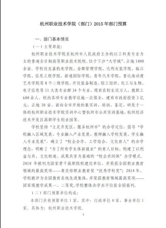 杭州职业技术学院2015年部门预算公开
